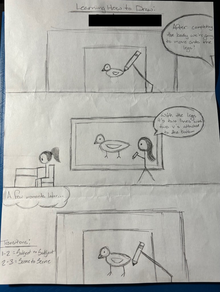 “On a sunny spring afternoon, I was sitting in my fifth grade classroom with my teacher pulling up a video on how to draw a bird. The lights were off and the bright but subtly light from the sun was coming through the window. All of us were silent as we excitingly awaited to start drawing with the paper in front of us and pencils in hand. ”
