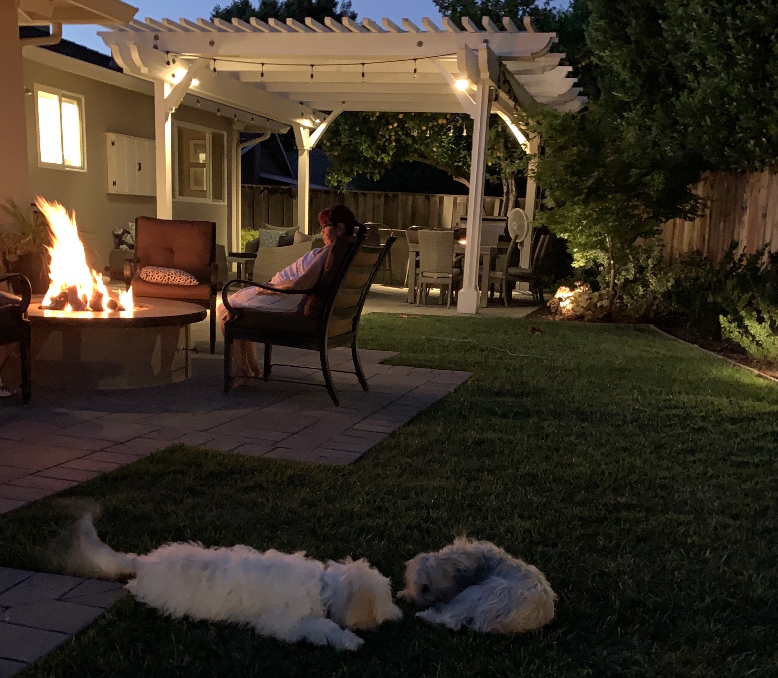 My sister and I were in California to puppy sit while my son, the kids, my daughter-in-law, and her family went to Alaska to celebrate her father’s 70th. It really was a wonderful place to stay, with the outdoor living area, fire pit, and a hot tub.